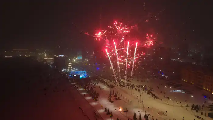 В Костанае Новый год встречали шумно и по-настоящему по-зимнему. Жители города вышли на центральную площадь целыми семьями, фотографировались у новогодней ёлки и не спешили расходиться после боя курантов. Над городом прогремел праздничный салют, а улицы наполнились смехом, музыкой и поздравлениями с наступившим 2026 годом.