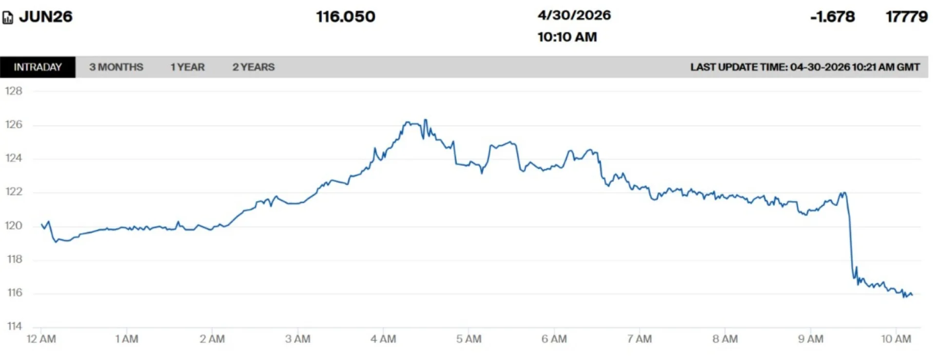 Утром 30 апреля нефть марки Brent резко подорожала, превысив отметку в 120 долларов за баррель. Рост цен был вызван продолжающейся блокадой Ормузского пролива и неопределённостью вокруг переговоров между США и Иран, что в отдельные моменты привело к котировкам выше 126 долларов за баррель.