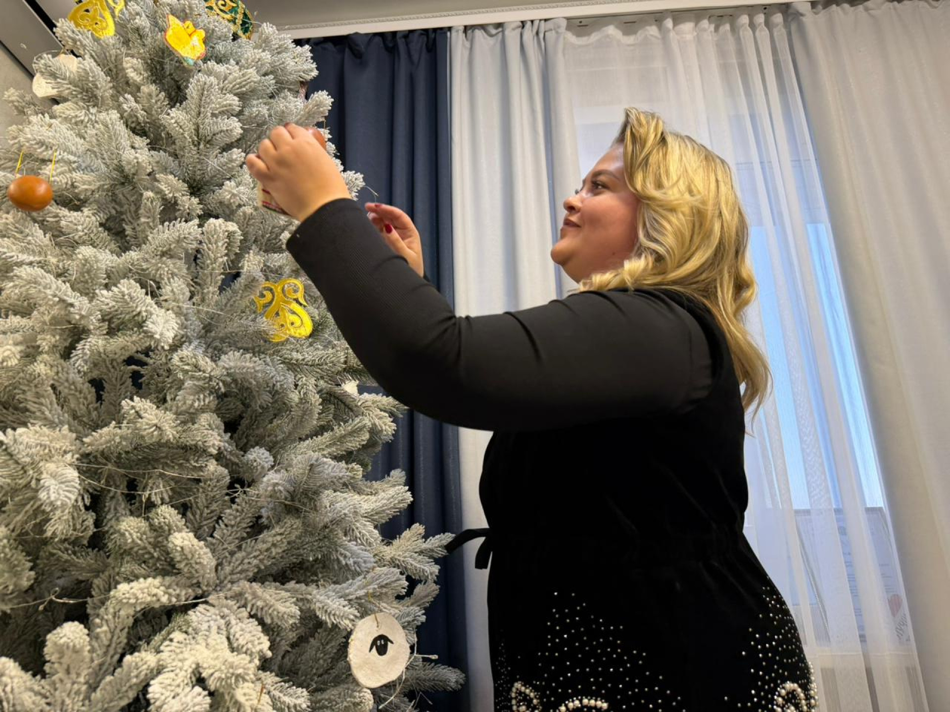 Для создания украшений Вера отправилась на рынок, где приобрела необходимые материалы. Она решила украсить верхушку ёлки в виде саукеле, традиционного казахского головного убора. Вера также сделала игрушки своими руками, вспомнив уроки труда: