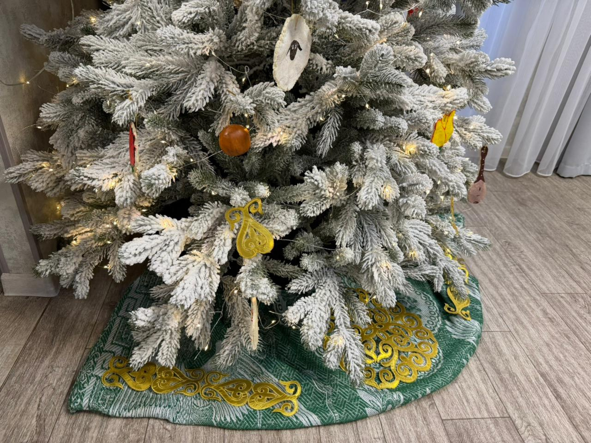"Под елкой всегда имитируем снежок, но так как задача стояла сделать все в стиле Наурыза, решено было сделать корпе."